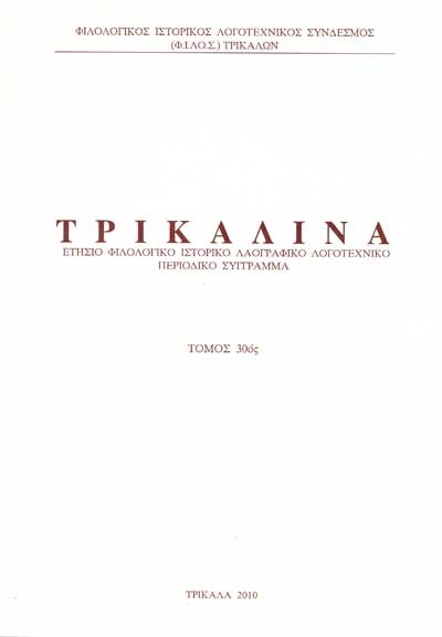 Κυκλοφόρησε ο 30ός τόμος (2010) του ετησίου περιοδικού επιστημονικού συγγράμματος «Τρικαλινά», το οποίο από το 1981 εκδίδει ανελλιπώς ο Φιλολογικός, Ιστορικός, Λογοτεχνικός Σύνδεσμος (Φ.Ι.ΛΟ.Σ.) Τρικάλων.