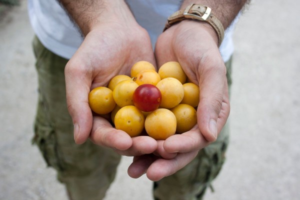 walking around and foraging fresh fruit.