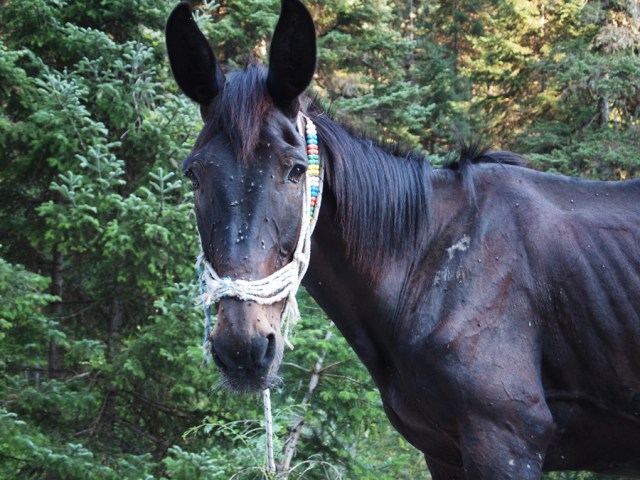 γέρικο άλογο των υλοτόμων κοντά στο κουκουφλί