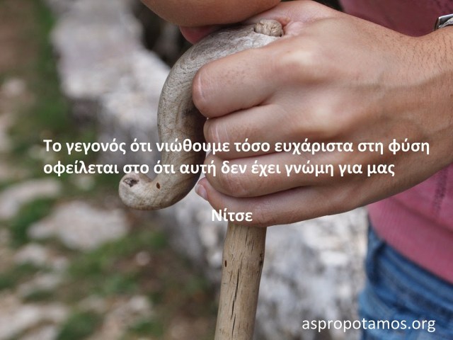 Κι όπως τονίζει ο Νίτσε, στην πόλη οφείλουμε να υποδυόμαστε κάποιο ρόλο, επειδή μας ενδιαφέρει πολύ το τι σκέφτονται οι άλλοι για μας. αντίθετα, όταν επιστρέφουμε στη φύση, μπορούμε να επιτρέπουμε στον εαυτό μας την πολυτέλεια να είμαστε εμείς οι ίδιοι. Δε χρειάζεται να ντυνόμαστε, να μιλάμε ή να ενεργούμε με έναν ιδιαίτερο τρόπο. αρκεί το να αφηνόμαστε να μας οδηγεί εκείνη στον πυρήνα του εαυτού μας, όπου μας περιμένει μια πηγή ηρεμίας