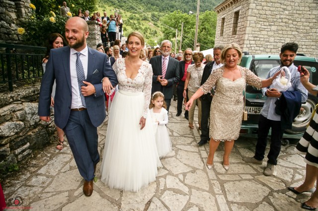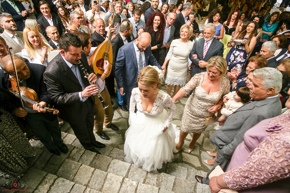 Η νύφη καταφτάνει στην εκκλησία της αγίας Παρασκευής με συνοδεία οργάνων.