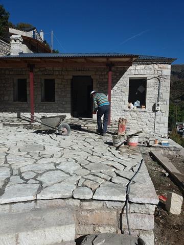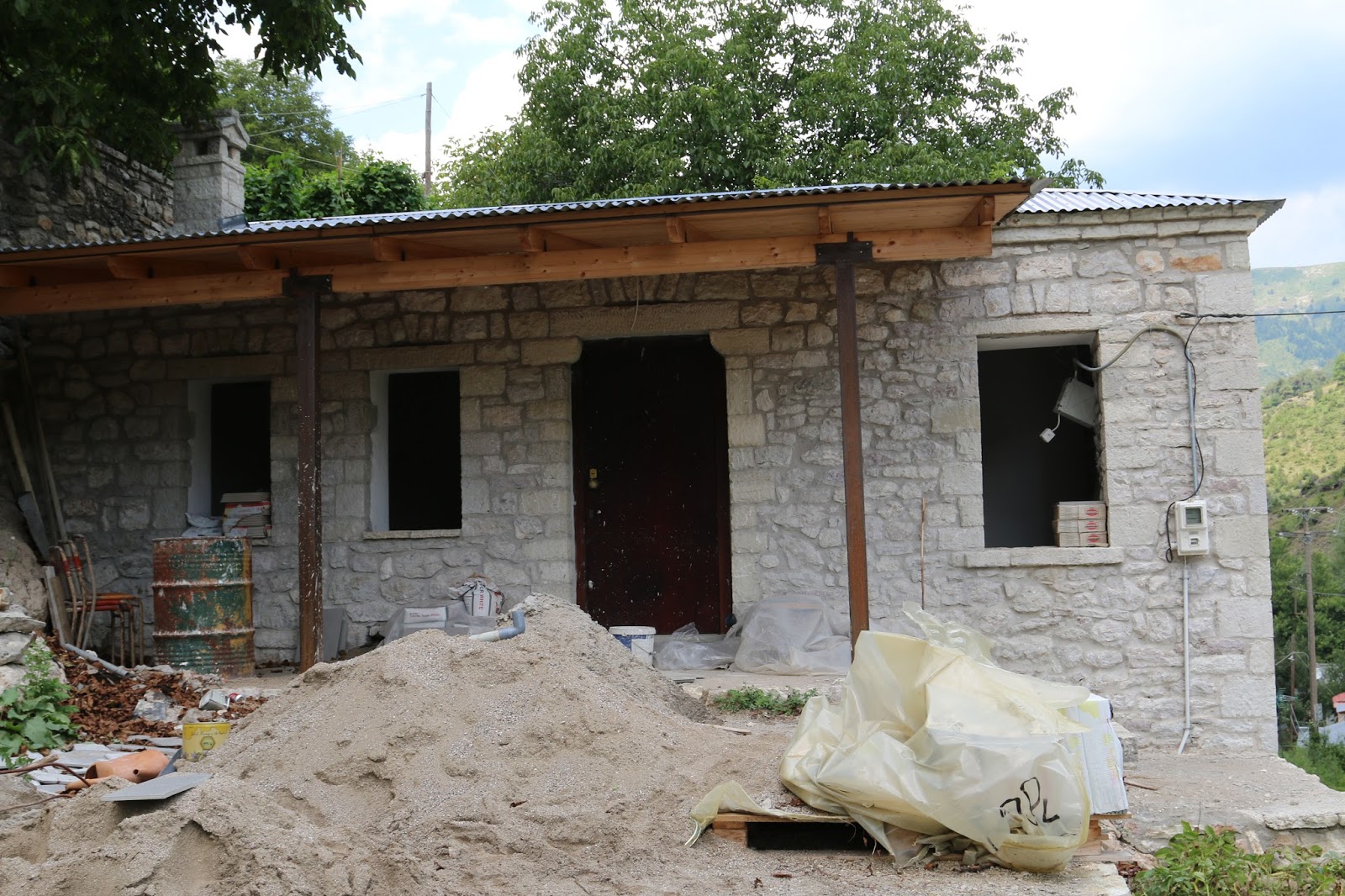 Οι παρακάτω φωτογραφίες δείχνουν την εξέλιξη της ανακατασκευής βήμα βήμα με την κατασκευή πέτρινου περιβόλου και αυλών καθώς και αμμοβολή στον βασικό κορμό του κτηρίου.