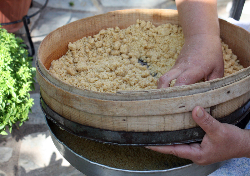 ε. Ακολουθεί το κοσκίνισμα το οποίο χρειάζεται για να γίνει ο τραχανάς ψιλός και επομένως κατάλληλος για μαγείρεμα.