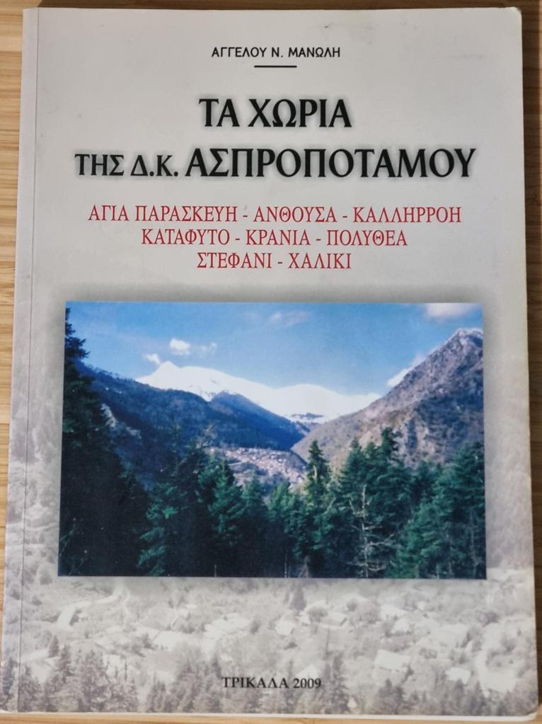 Ξεκινάμε με <<Τα χωριά της Διευρυμένης Κοινότητας Ασπροποτάμου>>. Ημερομηνία έκδοσης 2009. Συγγραφέας Άγγελος Ν. Μανώλης. Εκτύπωση Βογιατζόγλου Θρασύβουλος, Τρίκαλα.